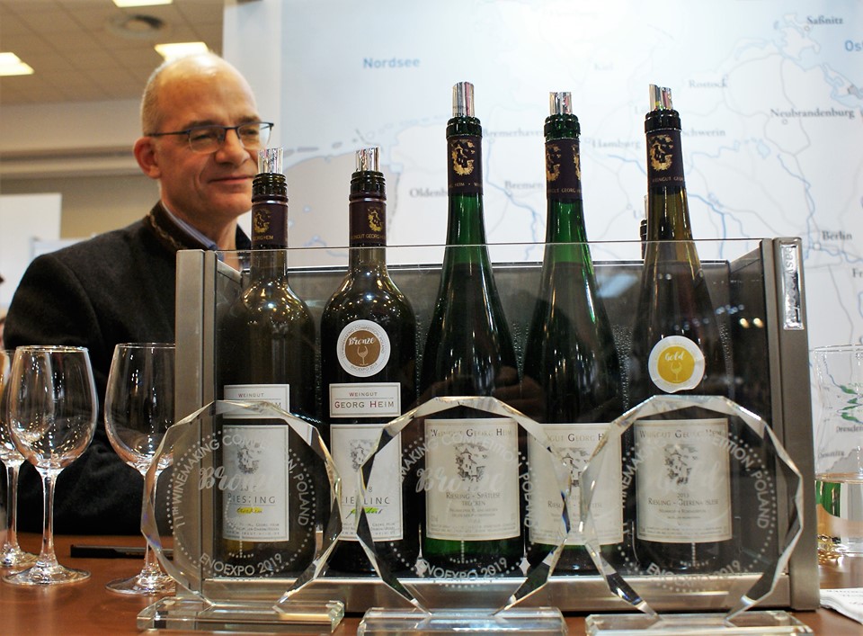 Najsłynniejsze i najpiękniejsze rzeki winem płynące, będące synonimem dla swych nabrzeżnych win to Douro i Mezela. Unikatowe w skali światowej,wysokie i długie ( do kilku kilometrów ) nabrzeża, porośnięte winoroślą… skupiają wielu winiarzy. Na 17-te Enoexpo, znad Mozeli przyjechał Georg Heim. Jego winnica ma swe początki w 1876 r, i dziś w czwartym pokoleniu śmiało patrzy w przyszłość. Szczęściarz, który może skupiać się na jednym szczepie. Na królewskim rieslingu. Przywiózł do Krakowa wachlarz swoich etykiet od wytrawnych po słodkie, wielokrotnie nagradzane od lat w konkursach za najlepsze rieslingi. Jego typowe dla Mozelskiego nabrzeża rieslingi oddają specyfikę terenu o łupkowym podłożu. Od Trocken do Beerenauslese zachowują owocową świeżość, emanują czystością aromatów oraz posiadają stosowną kwasowość. Nic dziwnego, że jego wina zdobyły uznanie jury konkursowego zdobywając dwa brązowe medale i jeden złoty. Kilku procentowy areał Spätburgundera pozwala od 1999 r. na zaprezentowanie potencjału dla tego rejonu w hodowli niemieckiego odpowiednika Pinot Noir, Laudamusberg Spätburgunder w wersji spätlese trocken, mnie przekonał. Zrównoważona kwasowość, czysty nos o delikatnych aromatach, klasyczna owocowość i średnie ciało… Może Georg Heim znajdzie w Polsce importera, chętnie wrócę do jego etykiet…