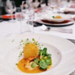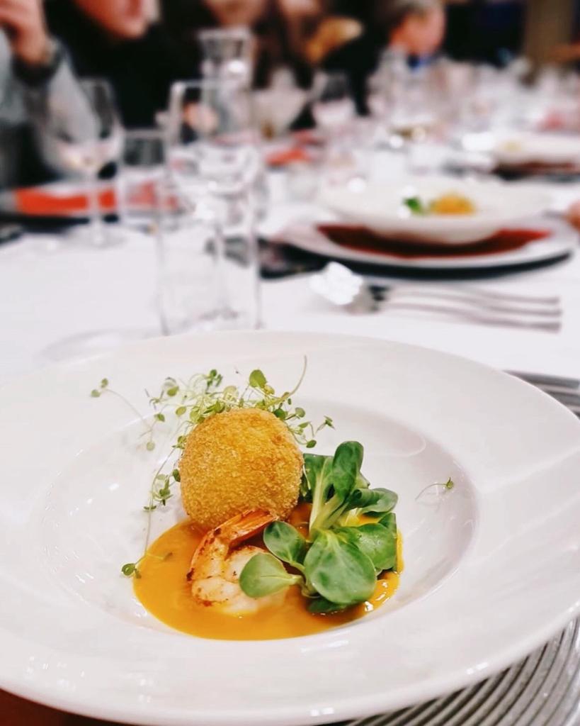 MENHIR VERDECA do tego sałatka z krewetkami i arrancini z mozzarellą na musie z mango. Pierwsze danie petarda.