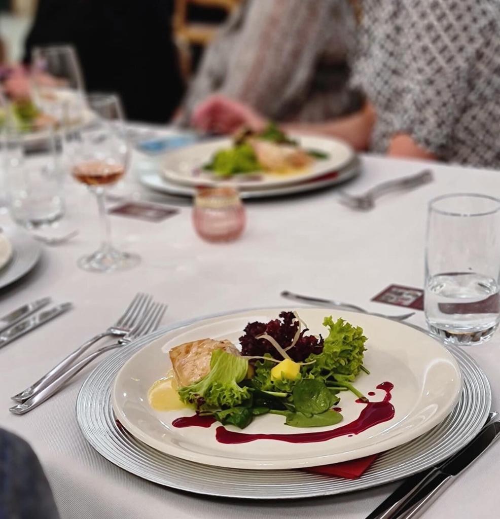 MENHIR ROSATO połączono z grillowanym indykm oraz z bukietem sałat i marynowanym imbirem na sosie wiśniowym z beuree blanc