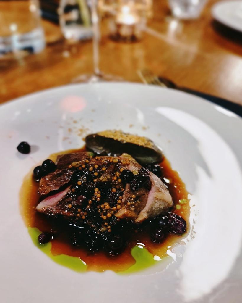 Biodrówka jagnięca/czarna porzeczka/palony bakłażan.