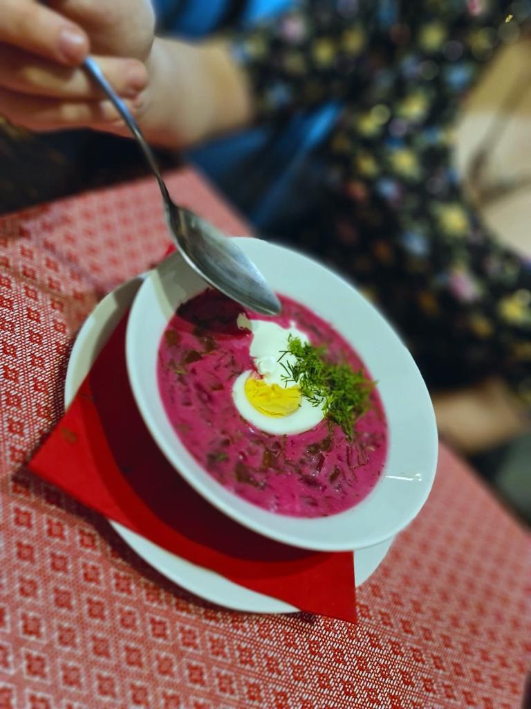 • chłodnik z botwinki z jajkiem (21 zł) pyszności